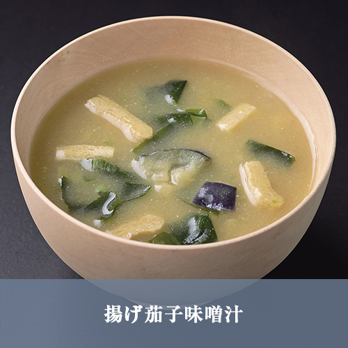 ほうれん草と油揚げ味噌汁×3、揚げ茄子味噌汁×3、