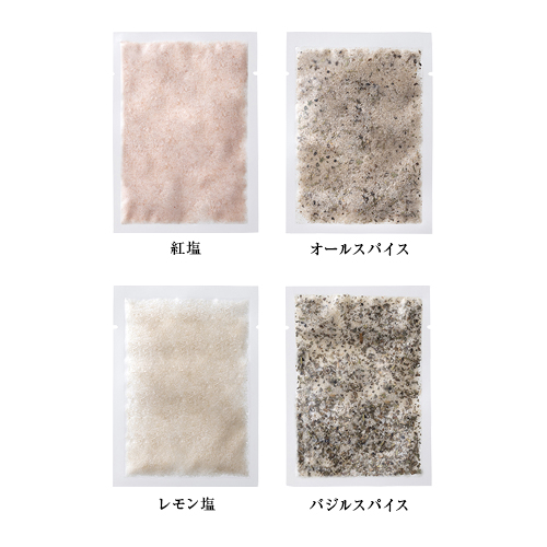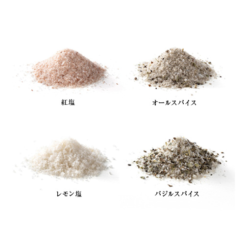 紅塩15g×1、レモン塩15g×1、オールスパイス10g×1、バジルスパイス10g×1 のいずれか1個