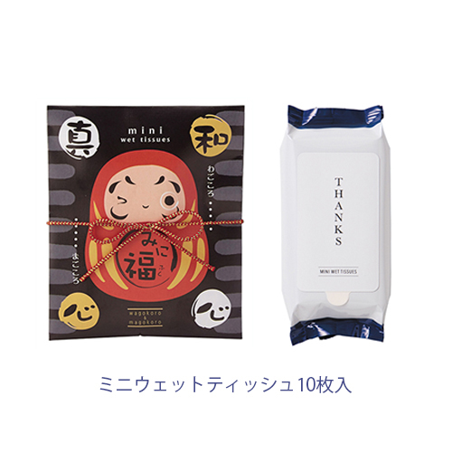 ●商品サイズ /95×115×15mm【セット内容】ミニウェットティッシュ10枚入※エタノール含有率30%※みに福(ウェットティッシュ)は航空便での発送が出来ない為、沖縄への発送はお受け致しかねます。