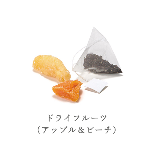 フルーツの甘みと紅茶の豊かな香りが二人の幸せな瞬間を思い出させる新感覚ドライフルーツティー。●商品サイズ/110×55×80mm●賞味期限/30日●アレルゲン/なし【セット内容】ドライフルーツ(アップル・ピーチ)20g×1袋入、三角ティーメッシュ(ダージリン)×1個入