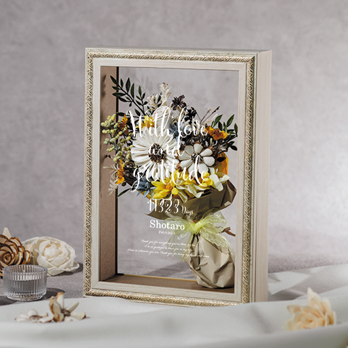 ●材質/ソラフラワー、造花、樹脂(フレーム)、アクリル板、紙、リボン