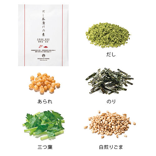 北海道産真昆布を使い、静岡県産抹茶の風味を利かせた、贅沢なだし茶漬けです。