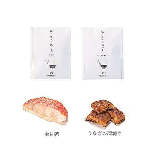 炊き込みご飯の素(2合用)×2、金目鯛1切×1、