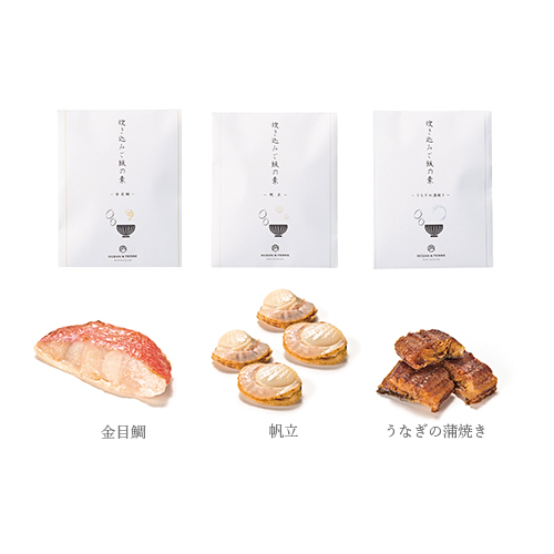 炊き込みご飯の素(2合用)×3、金目鯛1切×1、