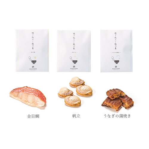 金目鯛1切×1、帆立2〜4個×1、うなぎの蒲焼き13g×1、