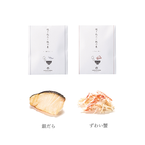 炊き込みご飯の素(2合用)×5、銀だら1切×1、ずわい蟹13g×1、