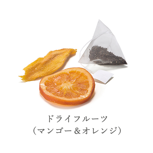 フルーツの甘みと紅茶の豊かな香りが二人の幸せな瞬間を思い出させる新感覚ドライフルーツティー。●商品サイズ/110×55×80mm●賞味期限/30日●アレルゲン/なし【セット内容】ドライフルーツ(マンゴー・オレンジ)20g×1袋入、三角ティーメッシュ(ダージリン)×1個入