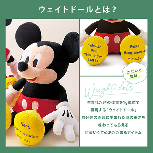 新郎、新婦の出生時の重さで作るメモリアルギフトを、ディズニーキャラクターで作ってみませんか。