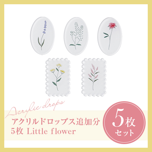 商品サイズ/ Little flower 1個サイズ:25×40×2mm Savon 1個サイズ:φ36×2mm Glitter 1個サイズ:37×38×2mm【セット内容】追加用アクリルチップ5枚(※色・種類の指定はできません。)